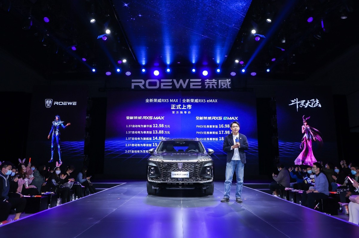 2021年12月23日,上汽荣威携手国潮动漫《斗罗大陆》,开启了一场国潮创新新车发布会。全新荣威RX5 MAX&全新荣威RX5 eMAX正式上市,两款新车共推出8款车型,官方售价分别为12.98万至16.58万元和16.98万至18.98万元。