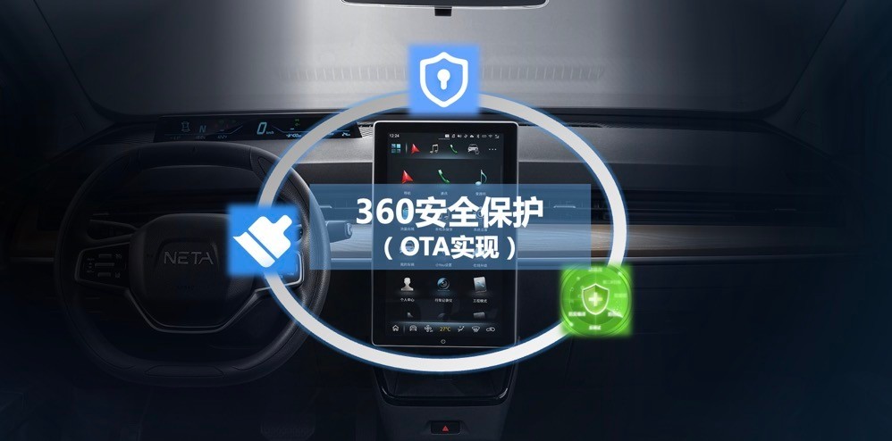 针对车机系统,哪吒V Pro也进行了升级,搭载了同级唯一的360安全保护,可实现车机缓存处理、车主信息隐私保护、手机APP安全加固等。