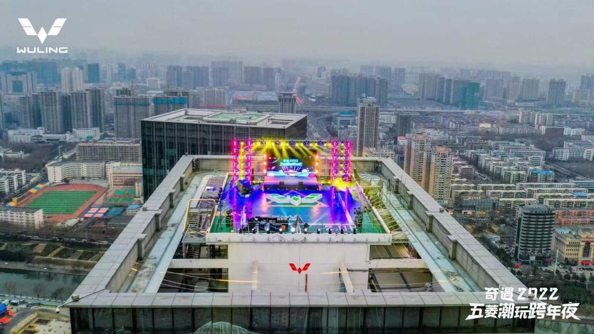 2021年12月31日晚,“奇遇2022 五菱潮玩跨年夜”活动成功“聚”办,高空停机坪跨年潮玩派对打破边界,解码城市态度。五菱在正弘城顶楼天台区设置了商家集市、品牌展位、潮玩体验、拍照打卡环节,在停机坪高台区举行狂欢盛宴。现场不仅有超燃的音乐和光影秀,同时还给五菱车主和嘉宾策划了各种互动游戏和精美礼品,新年奇妙飘雪,让大家收获一波意外惊喜,零点10秒倒计时更是将现场的气氛推至高潮。