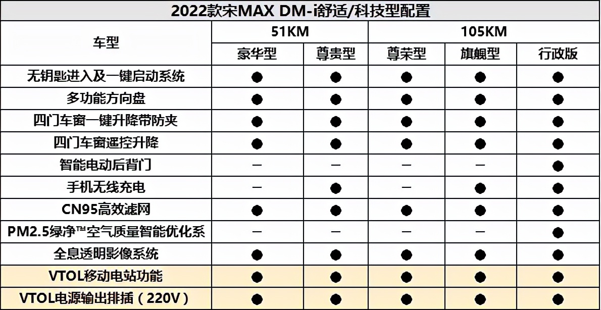 2022款宋MAX DM-i在舒适/科技型配置方面也非常丰富。全系标配无钥匙进入及一键启动、四门车窗一键升降带防夹、全息透明影像系统等豪华配置。