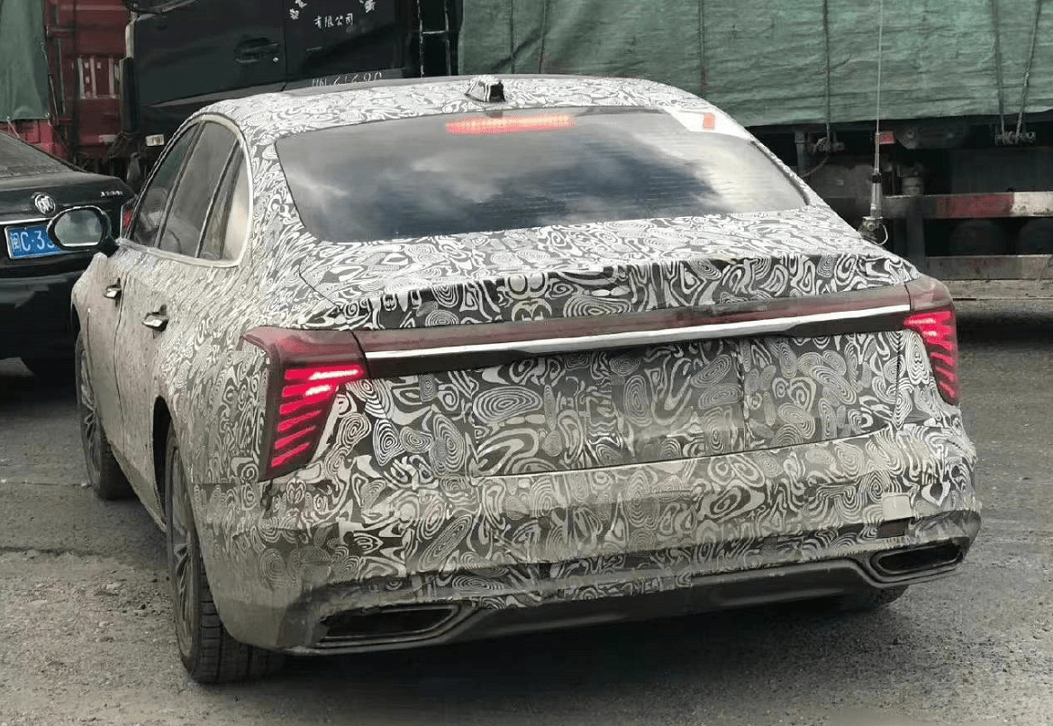 尾部同样采用了贯穿式的尾灯组设计,但相比红旗H9,造型更加前卫,且内部羽翼式的灯源设计更有科技感,体现出年轻化的姿态与定位。中间辅以精致的镀铬装饰进行点缀,提升质感的同时拉伸了尾部的视觉宽度。而后杠底部也带有横贯式的镀铬饰条,并形成双边共双出排气尾喉的造型,也让新车更具时尚气息。另外,我们还可以看到,新车尾标或为“H5”。