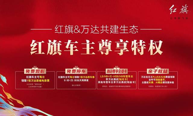 在助力体育强国事业的同时,新红旗始终坚持“一切以客户为中心”、贯彻“智慧六位一体”体验式营销模式,联合万达集团等跨行业伙伴共建生态,持续为客户奉献惊喜体验。2021年7月,新红旗“旗仕生态”正式启动;同年10月,一汽红旗与万达集团宣布共建全新“红旗用户体验生态”,第一批权益已于2022年1月落地实行,共计超过28万人次的红旗车主,通过红旗智联APP享受到了免费电影票、免费停车券、万达酒店贵宾卡、亲子活动等权益。