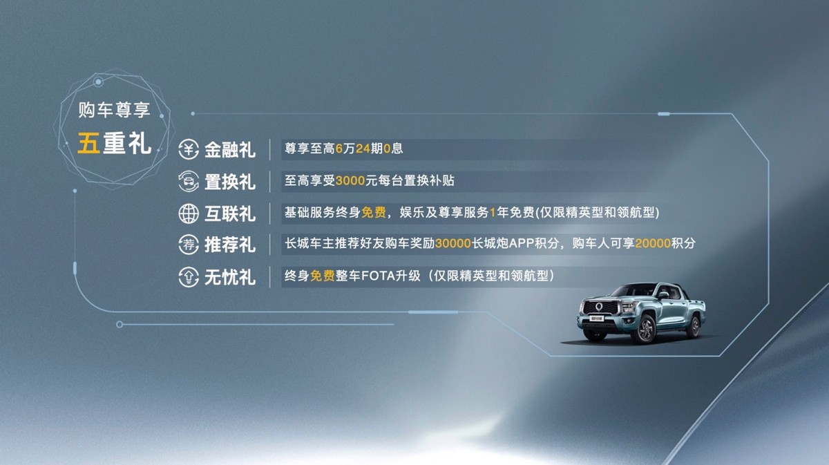在皮卡政策方面,长城皮卡还联合中汽协、乘联会及各皮卡友商共同助推皮卡新标准出台,筹备皮卡协会成立、推进皮卡政策解禁。据统计,目前全国放宽皮卡进城限制的城市已达到70%以上。