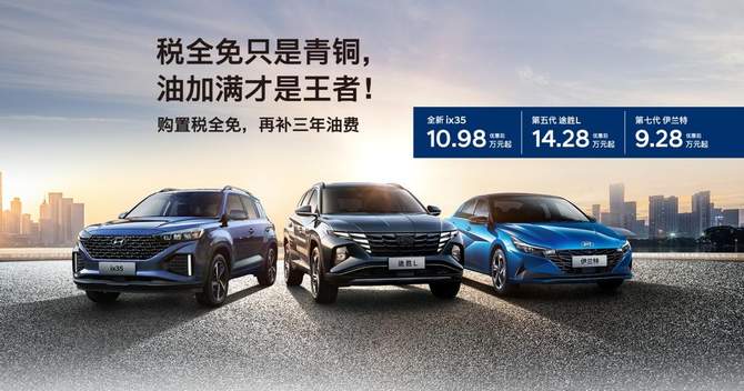 北京现代:北京现代推出极具诚意的“税全免只是青铜,油加满才是王者”钜惠活动。即日起,用户购买北京现代全系车型,都可在国家减免50%购置税的基础上,再享北京现代减免剩余50%,即为购置税100%全免。此外,备受用户青睐的第七代伊兰特、全新ix35、第五代途胜L三款车型还可享受3年油费补贴;部分车型还可享至高8000元的置换补贴、终身免费基础保养等一系列诚意政策。