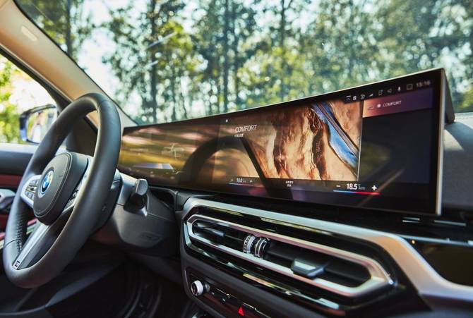 “功能岛”设计理念的焕新应用使物理按键大幅减少,传统挡把换装为精致小巧的拨杆,成功营造更加简洁大气驾驶舱氛围。新车还是华晨宝马首款采用全新BMW iDrive操作系统8.0、一体式悬浮曲面屏的车型,该屏幕集成了14.9英寸的触控显示屏和12.3英寸的数字仪表盘,并面向驾驶员微微倾斜,不仅为用户带来了极佳的数字化感官体验,还生动演绎了以驾驶员为导向的内饰设计理念。