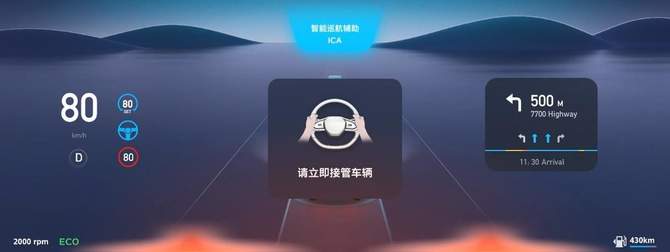 同时,传感器采集到的道路环境及车辆信息能够清晰直观地呈现在27英寸4K全景智能交互滑移屏上,让人一目了然。无论车辆即将进入匝道、变道超车,还是即将驶离NGP可用范围,系统都可通过视觉与语言播报的形式告知用户,带来更安心、更智能的“人机共驾”体验。