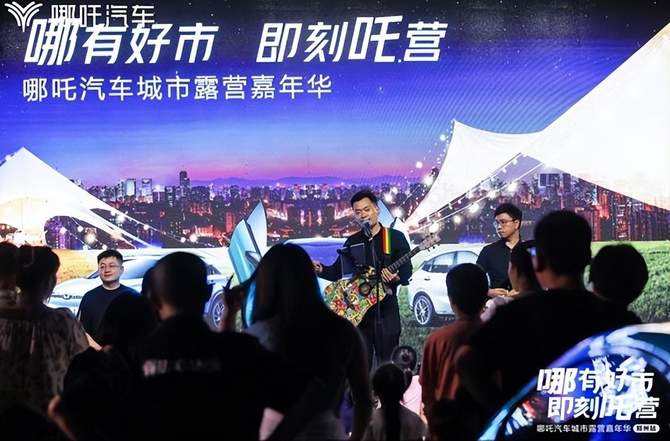 当你躺在树下,抬头仰望天空,将全身融入大自然,星空,晚风,还有眼前热闹的人群,激扬的音乐,身心得到无限的自由,相信你一定会爱上哪吒汽车带来的露营新体验。