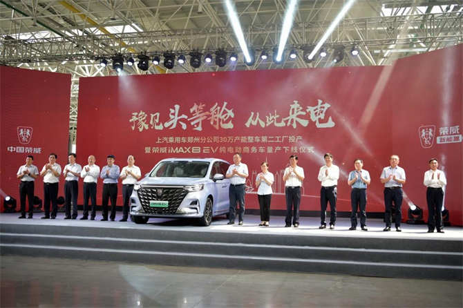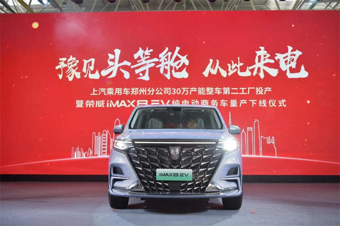 2022年8月24日,上汽乘用车郑州分公司第二工厂投产暨荣威iMAX8 EV下线上市仪式在上汽乘用车郑州分公司第二工厂举行。河南省省委常委、郑州市委书记安伟、省政府副秘书长魏晓伟、郑州市副市长史占勇等领导出席本次活动,见证该工厂投产的首款量产车型“纯电豪华MPV” 荣威iMAX8 EV“下线即交付”,正式入选当地党政机关单位公务用车,助力零碳公务出行。