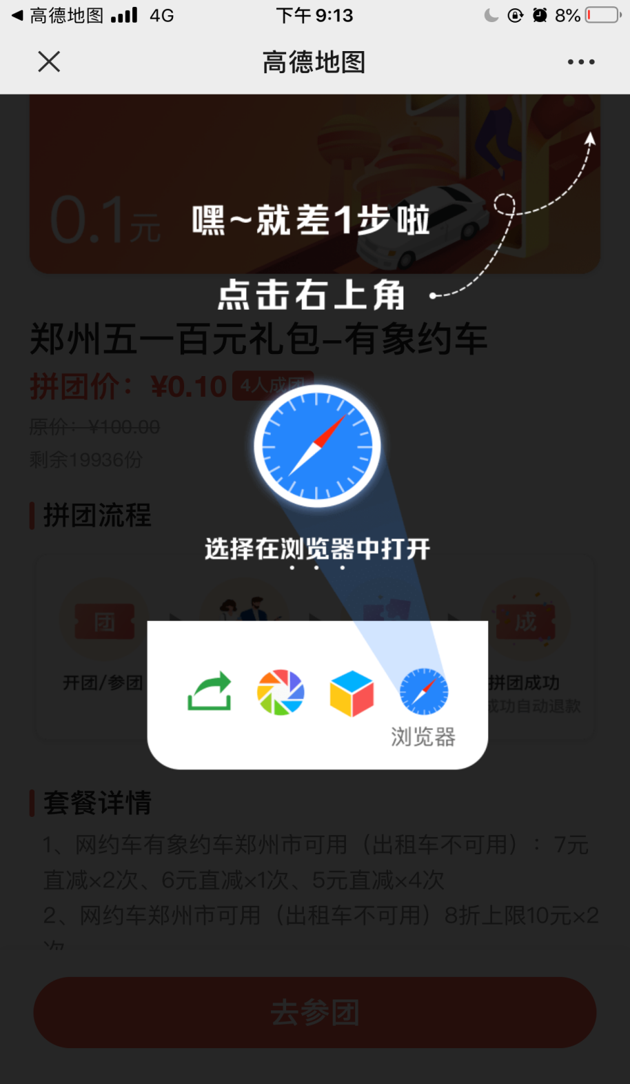 ②分享至朋友圈或邀请朋友与自己共同享受这份礼包,一起优惠出行!