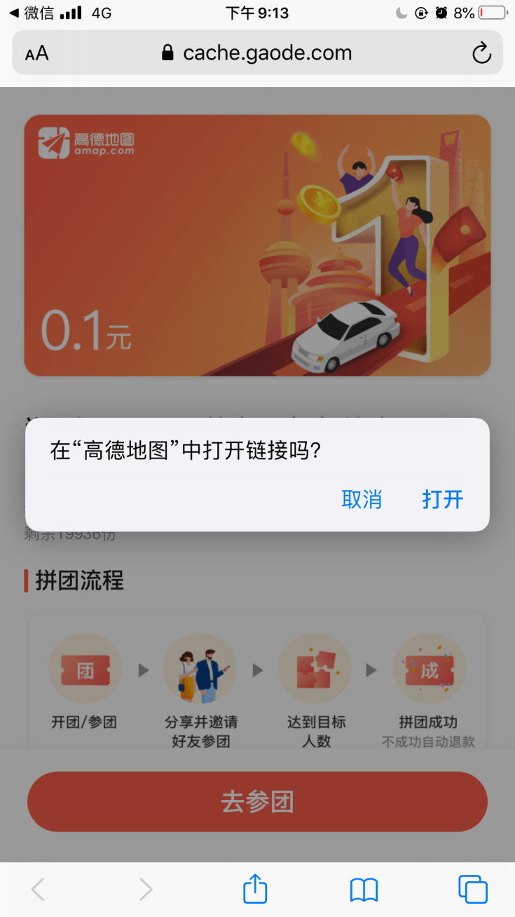③拼团成功后,可以在高德我的卡券中查看有象约车的乘车券。