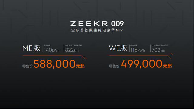ZEEKR 009 ME版 140kWh CLTC综合工况续航里程达822km