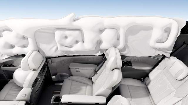 极氪009配备充气量70L的前后排贯穿式超大侧气帘