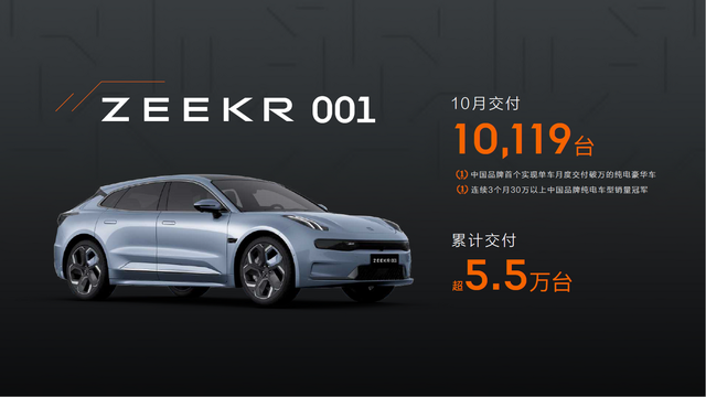 极氪001成为中国品牌首个实现单车月交付破万的纯电豪华车