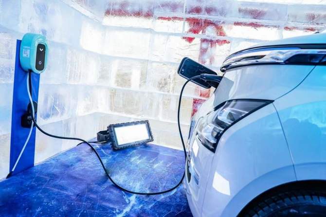 经过48小时冰封后,用户代表对Air ev进行充电尝试,仪表盘显示充电功能正常运转,并跳转智能保温模式。