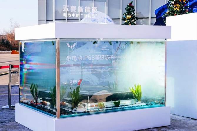 在电池包水中全浸泡挑战中,五菱GSEV标准化电池包全程无进水、无漏液,并成功点亮圣诞树上灯带,正常对外放电。