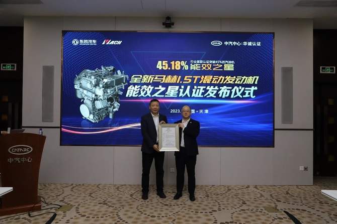 东风全新马赫1.5T混动发动机获得“能效之星”认证证书