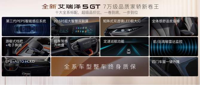从1到100万,艾瑞泽5系列不断进阶,只为给年轻家庭带来更有品质的生活。全新艾瑞泽5 GT以品质为王,颠覆同级市场品质标准,让年轻人的第一台车不同凡响。