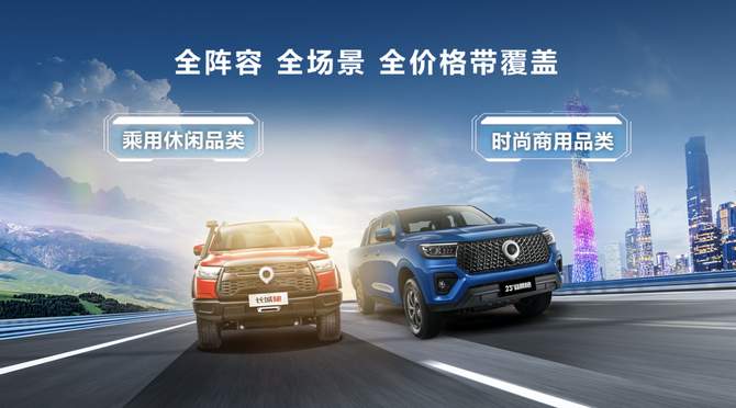 乘用休闲品类全面覆盖中型、大型、全尺寸皮卡,致力于满足用户多元化、个性化需求,提升全球用户的生活品质,赋能皮卡文化向上。时尚商用品类聚焦打造紧凑型和中型皮卡,致力于为千行百业深度打造价值之车、民生之车,助力用户生意好,生活更好!