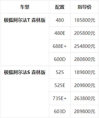 6月16日,极狐阿尔法S和阿尔法T森林版正式上市,并首次亮相粤港澳大湾区车展。阿尔法T森林版共四款配置,官方指导价18.58-28.08万元,最长续航升级至688km;阿尔法S同样有四款配置,官方指导价18.98-28.98万元,最长续航升级至735km。两款新车有6种外观颜色和3种内饰颜色组合,包括基于森林座舱主题全新打造的雾云灰外观漆色和有机绿内饰。