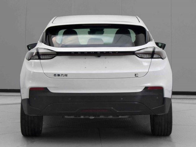 车身腰线与“一字型”大灯相连,贯穿至车尾,配合刀斧式下腰线,分散气流,降低风阻系数。几何C尾部采用了“惊鸿飞翼式”的贯穿尾灯,灯体长达1.2m,共包含216颗LED灯源,尾部日间行车灯尾端加入了几何英文“GEOMETRY”标志。