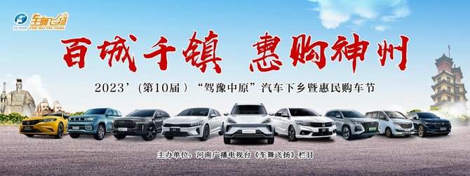 自今年年初以来,有关支持汽车下乡的国家政策紧密出台,随着县域居民生活水平提高,汽车走进了千家万户,县域更是提供了广阔的市场空间。6月10日“百城千镇 惠购神州”2023’(第10届)“驾豫中原”汽车下乡暨惠民购车节正式拉开帷幕,河南广播电视台《车舞飞扬》栏目暨《车舞飞扬》传媒集群先后走过了中牟、邓州、太康,响应国家汽车下乡政策,将真正的优惠送到老百姓家门口,帮助大家选到心仪爱车。
