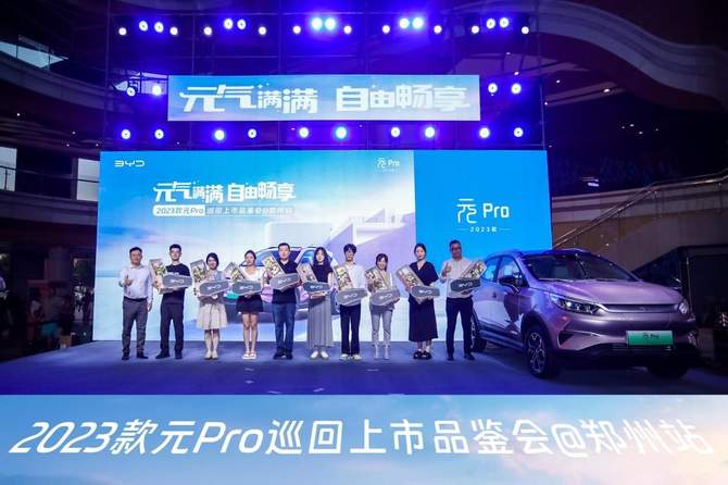 不仅如此,2023款元Pro车主代表作为比亚迪汽车的忠实迪粉,带着对2023款元Pro的青睐与热爱,与现场嘉宾也分享了用车体验,它的出现,势必继续巩固在小型纯电SUV市场的领先地位,成为A0级纯电最优选。与此同时,郑州首批2023款元Pro车主也来到现场,在众多嘉宾的见证下,进行了隆重的交车仪式,元气车主们登上舞台,为2023款元Pro点赞,在掌声与鲜花中享受这一刻来自比亚迪的诚意与祝福,正式开启元气满满的美好生活。