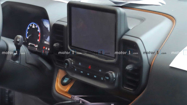 Bronco Sport采用了双色内饰,这类设计在硬派越野车中比较常见。谍照车款在车门把手位置,和中控悬浮屏幕周围带有橙色装饰。但是内饰材质呈现出大面积的塑料件,中控屏幕的框架,和仪表板周围以及中央通道的位置。