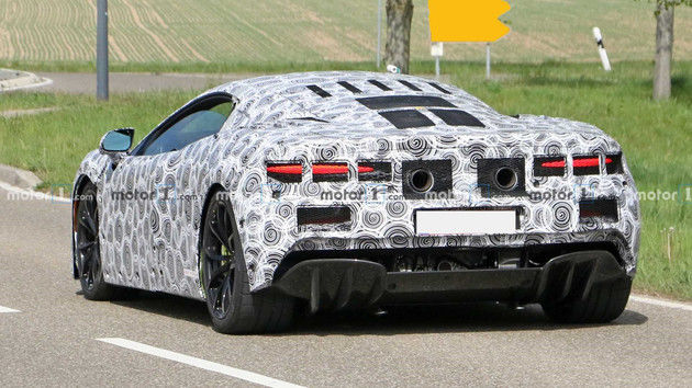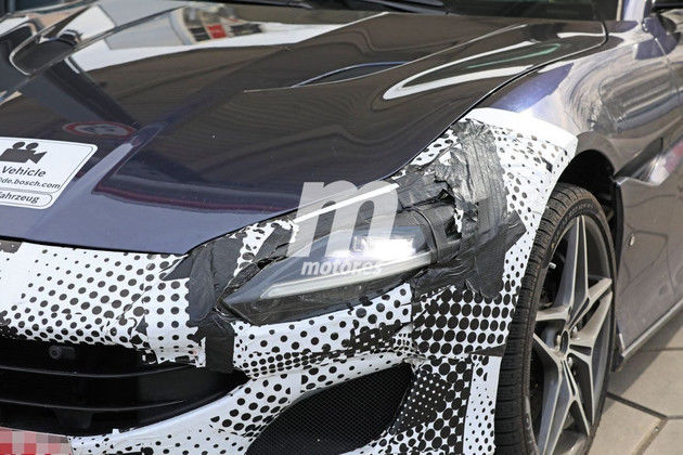 车头部位带有伪装,前脸被伪装成类似于法拉利Roma的样子。前大灯的外观有了明显改动,前灯线条不再向轮眉方向上扬,看起来更平直,日间行车灯在前灯组之间横向穿过,非常接近法拉利Roma的造型设计。