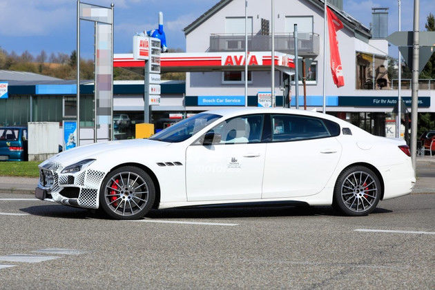 由于只是年度小改款车型,因此玛莎拉蒂新款总裁的路试车身上并没有厚重的伪装,我们可以看到除了前杠有小面积的伪装覆盖外,车身和车尾部都没有任何遮挡,可见主要的变化还是在前杠部位。