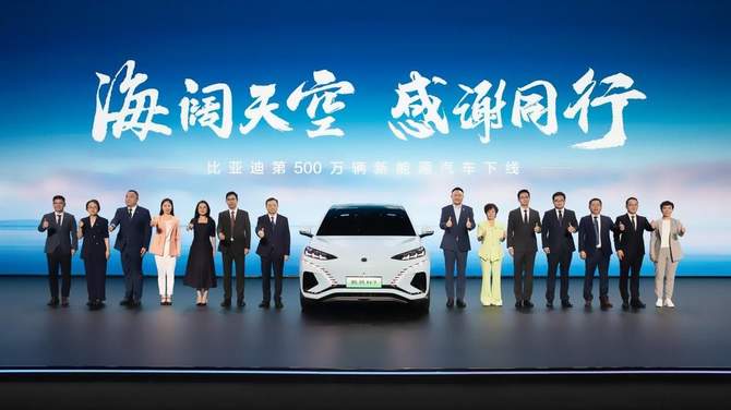 比亚迪成为全球首家达成第500万辆新能源汽车下线的车企,这份成绩属于比亚迪,更属于中国汽车品牌。在一起,才是中国汽车,比亚迪将与同行携手并进,共同打造令人尊敬的世界级品牌,为全球汽车工业变革注入中国汽车力量,以领先科技助力全球实现绿色梦想。