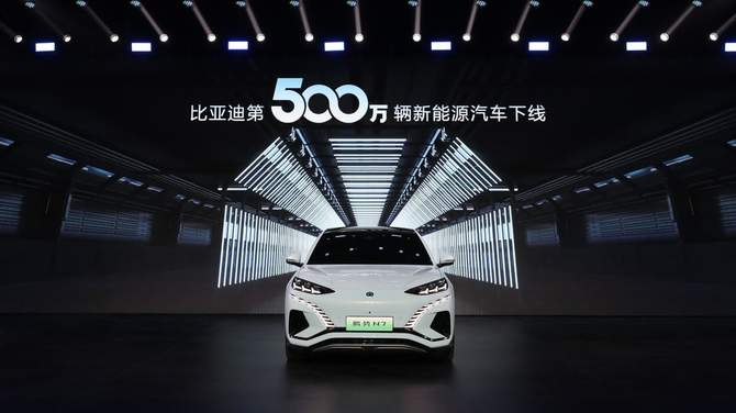 王传福向罗振宇交付比亚迪第500万辆新能源汽车腾势N7