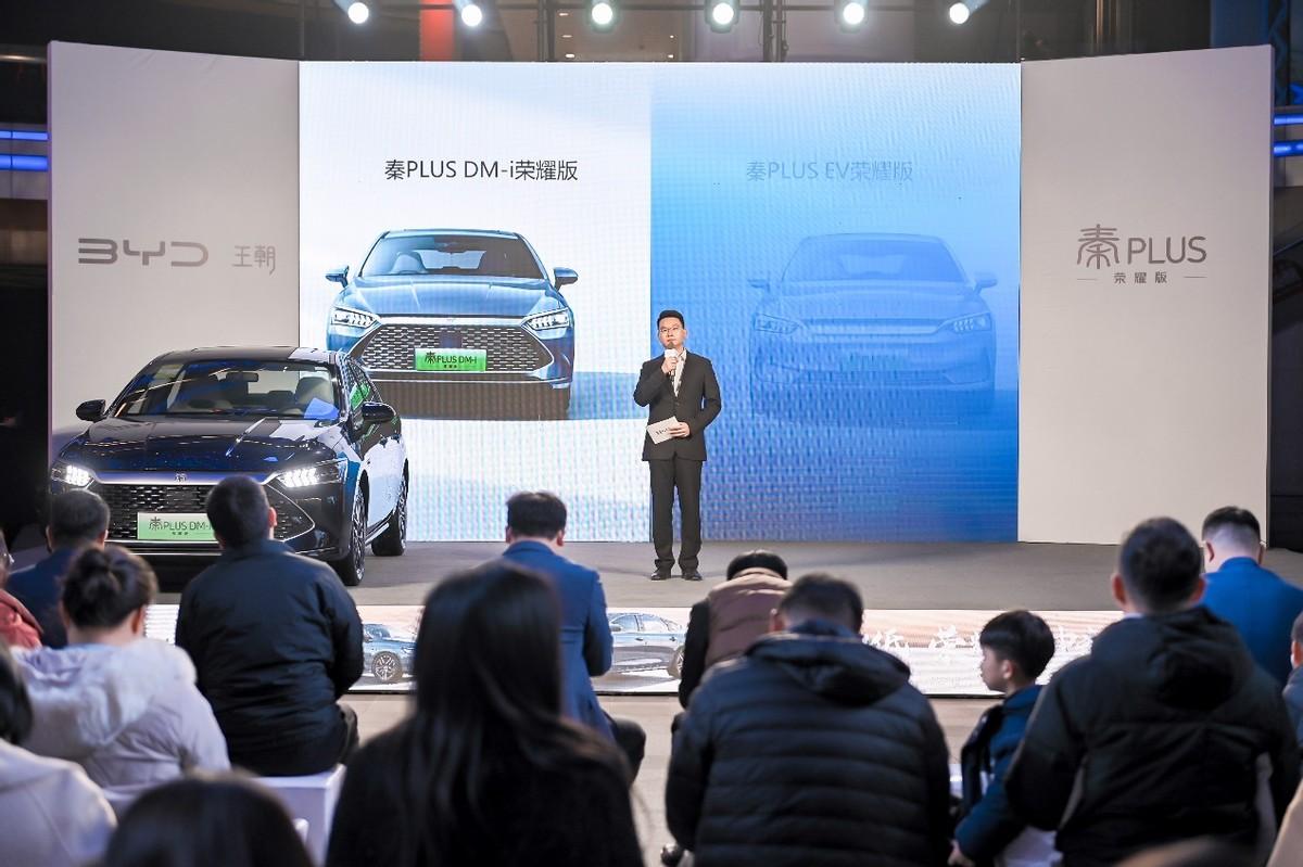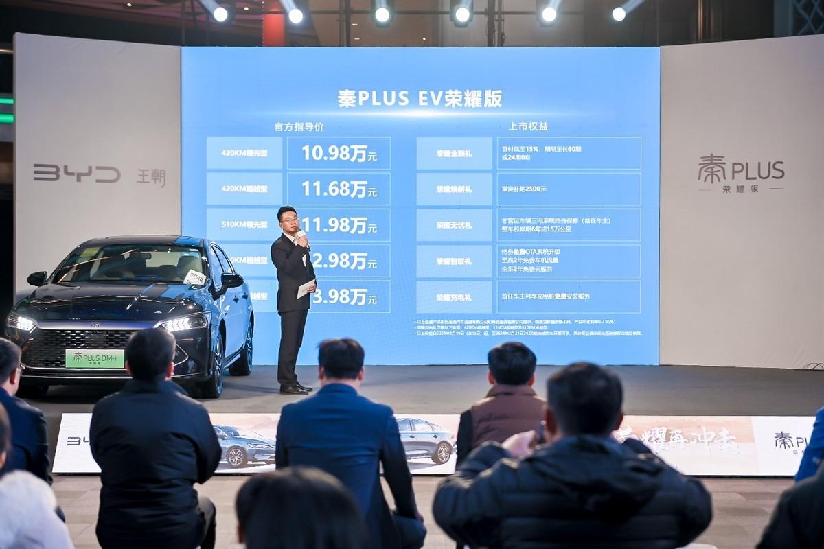 比亚迪王朝网销售事业部豫皖战区郑州大区运营经理涂文腾宣布了秦PLUS荣耀版的售价,其中DM-i版本包含有5种配置,官方指导价7.98万元——12.58万元;EV版本同样包含5种配置,7.98万元——12.58万元,比亚迪也正式开启了“电比油低”新时代。