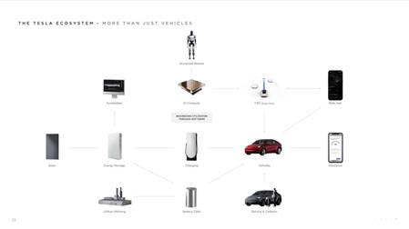 不止于车,特斯拉业务生态包括自动驾驶、机器人、电池电芯、可持续能源等