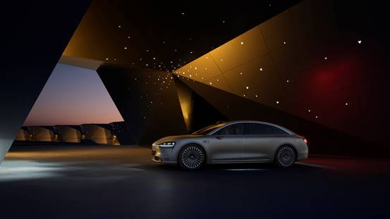 享界 S9大而不凡,华而不浮,拥有领先全球量产行政豪华轿车的极低风阻。整车以光塑形,以体造型,车身轮廓勾勒出极佳气流贴合曲线,标志性前进气帘设计,迎风入怀。新车还采用隐藏水切设计,结合流媒体外后视镜、纯平侧窗、豪华星辉锻铣轮毂等配置元素,车身侧面呈现浑然一体的光影立面,带来极致科技、极致简约的流体质感,最大化降低整车风阻系数、有效地降低行驶风噪,带来更低能耗、更长续航和更静谧的驾乘体验。