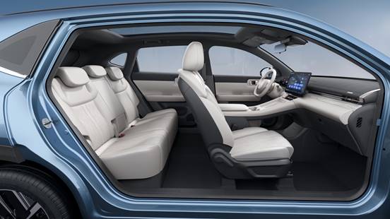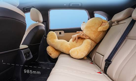 在乘坐体验方面,新车拥有同级最长985mm前后排座间距。超宽敞的二排空间,让后排乘客有开扬感,不压抑,坐姿不受限,轻松跷起二郎腿。“后排大沙发”座垫长度长达525mm,腿部承托性更优越,长途出行更舒适。座椅触感细腻,乘坐柔软,包裹性强且有支撑,开车不累腰轻松跑长途。前排支持主驾6向加副驾4向电动调节,带加热和通风功能。后排座椅支持加热,且靠背角度可调,最大调节范围12°,最大倾斜角度127°,家用舒适大沙发长途不坐小板凳。