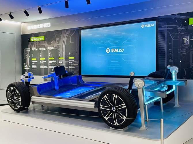 一层是品牌文化空间,有能量环剧场等。搭配墙屏地屏以及空中能量环,可实现多屏联动;动力简史展区科普汽车动力的发展历程以及全球各地的新能源政策;还有中国新能源汽车崛起之路展区等。