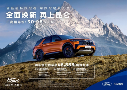 全新福特探险者共推出6款车型,厂商指导价30.98万元-39.98万元。新车上市期间,购车者还可享至高价值46,888元犒赏礼遇。全新福特探险者,赋予用户游刃都市、驰骋昆仑的底气和实力,让用户在日常城市以及越野场景中都拥有从容舒适的出行享受,更松弛的探索远方。