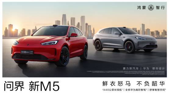 6、问界M5:年轻人的高颜值都市性能SUV;全系高阶智驾,全铝合金底盘,极致性能,智行无界;