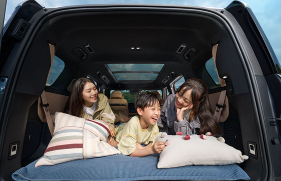 车内更有超90%的皮质包覆,全车电动座椅调节,以及真木透光饰板等匠心工艺,通过对内饰与材质的巧妙融合,为用户带来视觉、触觉、听觉的全感官沉浸式体验。同时,第三排支持一键放倒,全车能够秒变大五座或四座,通过灵活多变的座椅空间,满足不同出行场景的空间需求。