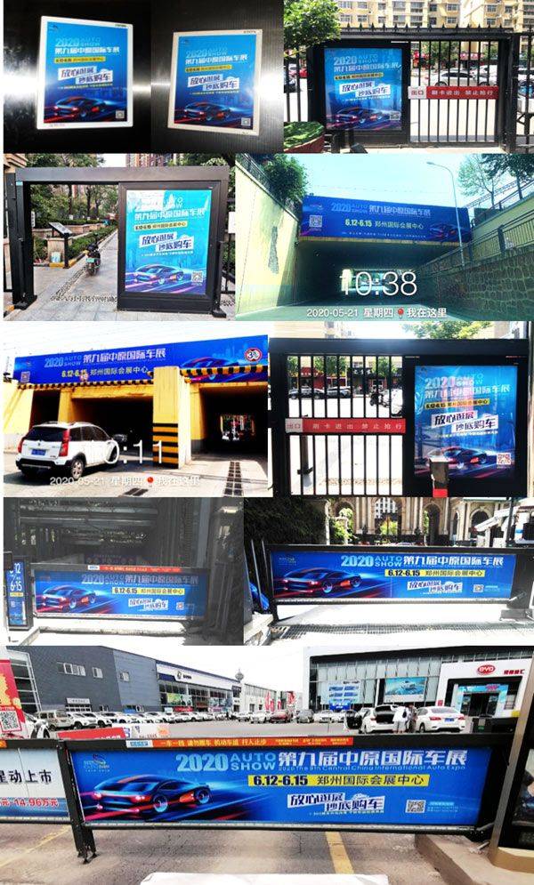户外:目前,彩虹桥、二环路等车流密集路段户外大牌已上刊;电梯广告已覆盖全城300座写字楼,电梯视频广告将全面入驻近10000个社区单元;门禁广告已强势进驻500个社区;道闸广告将对郑州市及周边100个商贸市场进行集中轰炸;公交候车亭、BRT包站广告,将占领中州大道、金水路、未来路、南环、北环、西环路等主流路段;全城公交后显示屏将进行为期半个月的高频次推广;华润万象城吊旗、电子屏将全力协助车展招观。