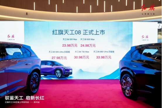 此次红旗天工08郑州区域上市发布会的成功举办,不仅标志着天工08正式进军中原市场,也为当地广大车主用户带来了一场未来出行方式的全新革变。未来,红旗品牌将以天工08为引领,持续深化与用户的连接,不断提升品牌影响力和市场竞争力,与广大用户携手共创高端新能源出行的美好未来!