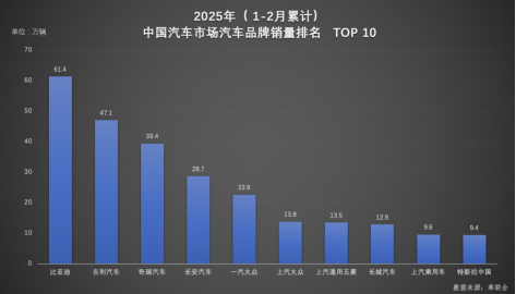 开年即领跑,实力铸巅峰!在2025年1-2月中国汽车市场销量榜单中,比亚迪以绝对优势横扫车企集团与汽车品牌两大赛道,一举斩获“双冠军”,成为开年最耀眼的行业标杆。