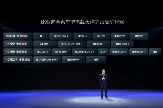 比亚迪能够在如此竞争激烈的市场中脱颖而出,取得双冠王的佳绩,绝非偶然。在产品布局方面,比亚迪拥有极为丰富的新能源车型矩阵。在技术创新上,比亚迪多年来在新能源领域的深厚积累开始集中爆发,厚积厚发引领新变革。今年2月10日,比亚迪召开智能化战略发布会,发布了高阶智驾系统“天神之眼”,并宣布全系搭载高阶智驾首发搭载在21款车型上,覆盖7万级到20万级,包括价格亲民的海鸥,真正做到了全民智驾。