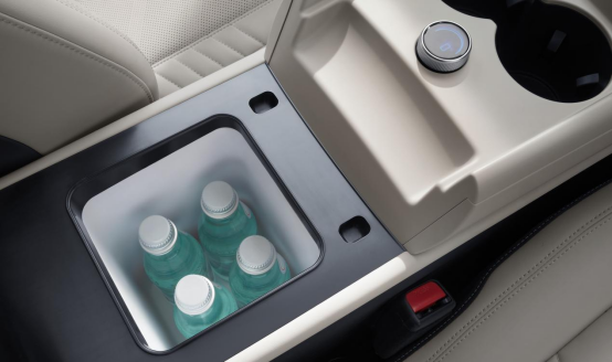 秦L EV的内饰也很带感。年轻人眼中的大爆款——冰箱、彩电、大沙发,全部上车。同级唯一的一体式智能冷暖冰箱,不仅能制冷,还能制热。无论是打工人的早八餐,还是女生特殊时期的红糖姜茶,都能温热适口,暖意融融。