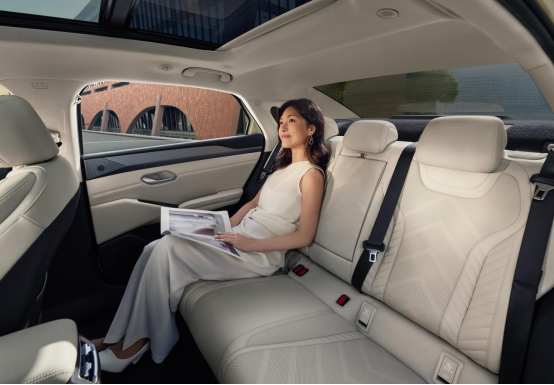 作为一款中级纯电轿车,秦L EV拥有2820mm的超长轴距,纯电平台短前后悬的优势,释放出宽适的车内空间,得房率84.8%,后排腿部空间远超同级。头部空间也十分优异,身高185cm的大高个坐在后排也不会憋屈,可以尽情舒展大长腿。