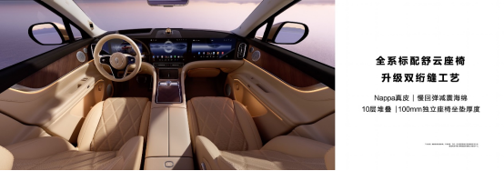 问界M9全系标配舒云座椅,采用优质Nappa真皮,升级双绗缝工艺,奢适触感与豪华质感相得益彰。主驾座椅升级电动可伸缩坐垫,大五座二排可选奢享零重力座椅套装,新增物理按键,支持一键即享,享六座主驾二排座椅升级电动腿托,坐拥奢适舒享体验。