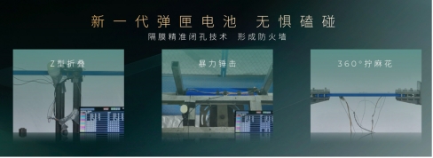 电池安全上,传祺向往S7搭载的新一代弹匣电池,可在热失控前形成防护墙,阻断热失控。无论是Z型对折、暴力锤击、还是360°麻花扭转都不会起火,真正做到不怕碰撞、不怕磕底。