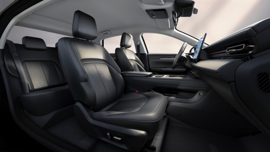 内饰方面,有双色内饰可选:霞光橙,更富个性与动感;暗夜灰,极具稳重和优雅,满足不同消费者的审美需求。内饰采用肤感PU材质,带来真皮般的细腻触感,且持久抗菌;搭配石纹透光工艺处理的曜石藏金饰板,细节之处尽显奢华。舒适怀挡设计、回形空调出风口、大功率风冷无线快充让日常出行更为便捷,不仅如此,灵活休憩躺椅设计以及后排中央扶手让驾乘体验更优,而8.8+15.6英寸双屏配置,则为车内营造出浓厚的科技氛围,操作便利性也得到了显著提升。 同时,舒适性与实用性方面全面升级,丰富座椅功能,提升乘坐舒适感。