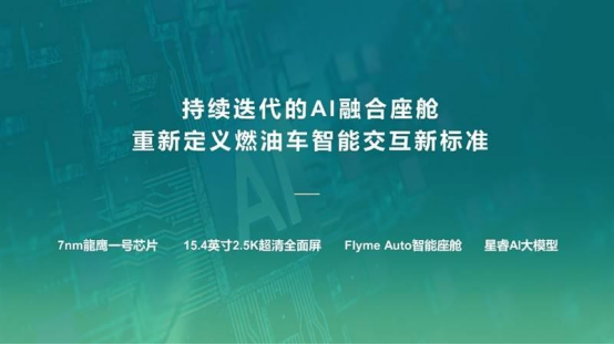 硬件层面,新车搭载首颗国产车规级7nm龍鹰一号芯片,其AI算力是8155芯片2倍,配合16G+128G超大存储空间,让高强度、多任务操作也能丝滑流畅,并为未来升级迭代提供算力和空间冗余,让用户常用常新,越用越智能。软件层面,新车全系标配行业第一梯队的Flyme Auto智能座舱系统,其深度融合Deepseek AI大模型,实现云端、车端、手机端的三端无界互联。