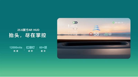 同级尺寸最大的25.6英寸AR-HUD抬头显示,借助实景融合技术,带来沉浸式AR效果,集成红绿灯读秒、导航信息等多项功能,安全尽在掌控。
